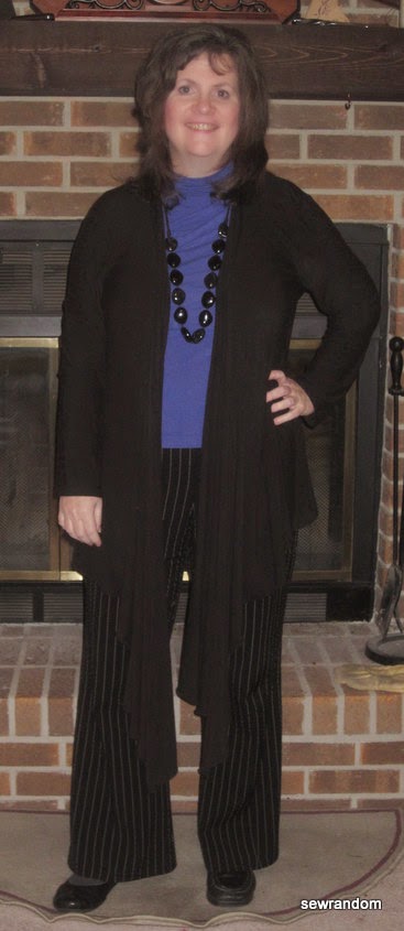 At first glance, there's nothing really wrong with today's outfit...modified Loes Hinse Oxford Pants, a funnel-neck top from Burda magazine...Sept 2009, I think, but I somehow didn't ever get a review written...and the Vogue 8305 drapey cardigan.